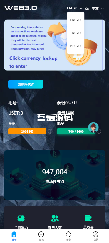 多语言挖矿盗U系统/3链erc/trc/bsc/存币生息/质押申购盗u三合一支持自定义币种行情k线 1周前 娱乐源码 盗u前端vue,后端fastadmin,全新开发,后端源代码提笔,不是第三方的真正客户运营级别 质押,申购,产品,质押,流动性节点 原文链接:https://5ima.com/27.html,转载请注明出处。